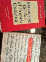 The Recipe: Season the steaks on both sides with a little coarse salt and freshly ground pepper and let sit for a few minutes. Set a heavy bottomed pan on the stove on medium high heat. Add the butter and a dash of your preferred cooking oil (this helps the butter not to burn since we will be cooking these steaks on pretty high heat for maximum browning). As soon as the butter begins to turn golden and the pan is hot, add the steaks. Increase the heat a little as the steaks will cool the pan down. If the steaks are thick (an inch or more) you should cook them 5 to 6 min per side for medium rare. If they are less than an inch, I would say no more than 4 min per side. As the steaks are cooking, put 4 slices of bacon (for the salad) to cook on the stove. The egg water should be boiling about this time. Set the timer for 15 min. When the steaks are finished, set them on a plate and cover with tin foil. Turn the heat down a little and add some diced shallot and the mushrooms, chopped. Cook until the shallot is just starting to brown and the mushrooms are softening and then add the red wine and beef stock to deglaze. Cook until the liquid is reduced by about half and only then do you season (the flavors are being concentrated and you don’t want the salt to be concentrated as well). As your sauce is reducing, remove your bacon to a paper towel lined plate and check on the gratin dauphinois. It may need 10 more minutes depending on your oven. It will be starting to really brown at this point and you must remind yourself of the difference between brown and black. Brown is good, especially around the edges so don’t be afraid of a little or a lot of color in this case. Remove the dish from the oven when it is ready and tent with some foil while you finish the steak and put the salad together.